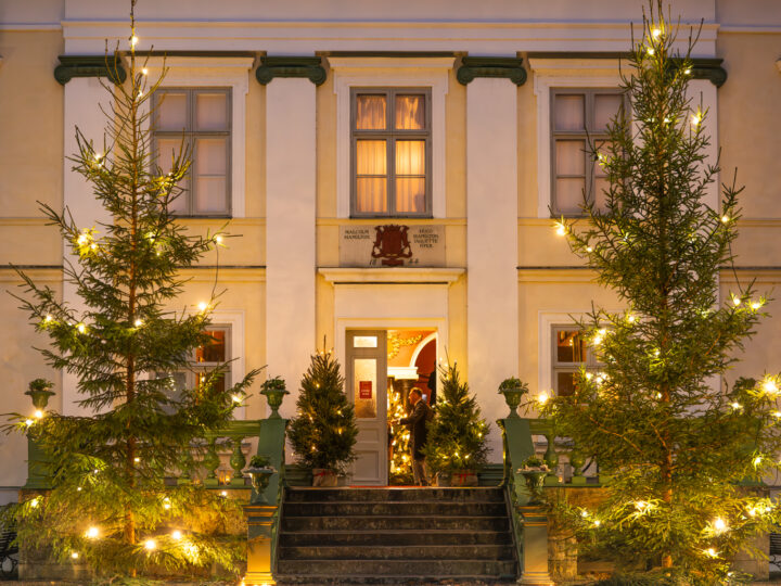 Kvällen börjar kl. 17.00 med glögg och pepparkaka på slottstrappan med tillhörande vinsing av Huseby Slott. Därefter leds ni vidare till Mejeriet där julbordet serveras i en mindre, intim lokal – långt från trängsel och stress. Välkommen till en julkväll på Huseby Bruk.